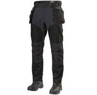 Det finns två avtagbara hängfickor med kardborrefäste, två framfickor, infällda stolpfickor bak, en höger benficka med tumstocksficka och pennfickor samt en benficka med en utvändig vinklad telefonficka som har magnetlås. Det finns även invändiga knäskyddsfickor med två olika höjdlägen.