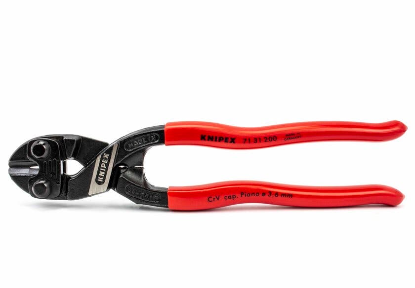 Med utväxling. Centrumskär, induktionshärdade centrumskär (64 HRC). Klipper bl.a. pianotråd, bultar, nitar och kopparkabel. Klippkraften motsvarar mer än 20 gånger den använda handkraften.